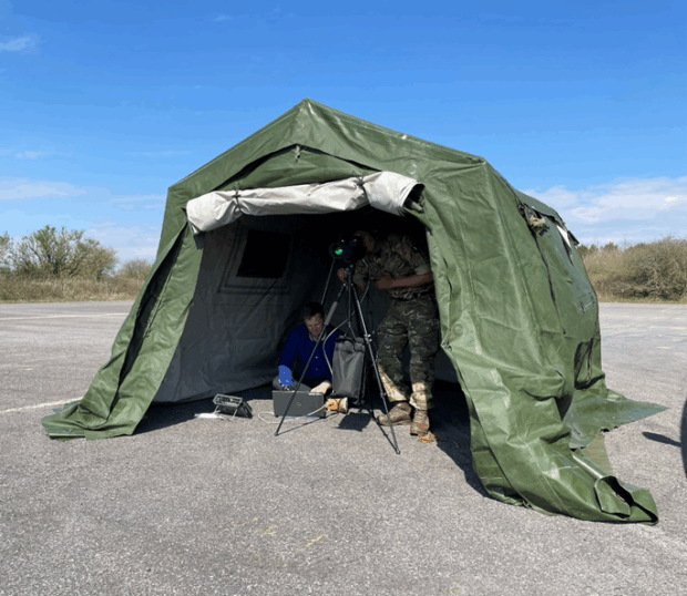 A standout moment of the project was the field trial conducted with a Defence and Security Accelerator (DASA)-funded FSOC system called WOLF, developed by AVOptics. This trial took place on a disused airfield at the Land Systems Test and Reference Centre (LSRC) at Blandford Camp in Dorset, providing an ideal environment to evaluate the system's performance in a realistic yet controlled operational setting. The WOLF system represented a cutting-edge implementation of FSOC technology, and the trial offered an invaluable opportunity to assess its feasibility for military use.